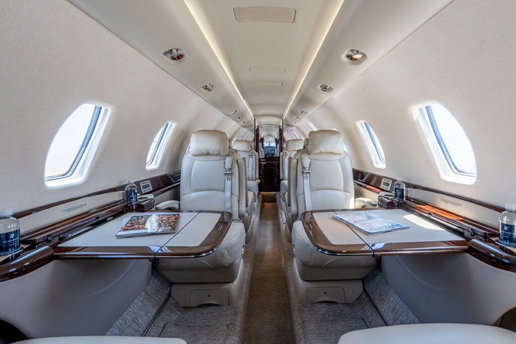 The Citation Sovereign features a 5.7-foot stand-up height cabin with double-club seating, 14 large windows, a 35 cubic-foot in-cabin luggage compartment, forward galley and private aft lavatory.