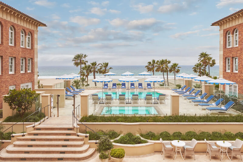 Luxury beachfront hotel with ocean-view suites, spa, and California coastal charm